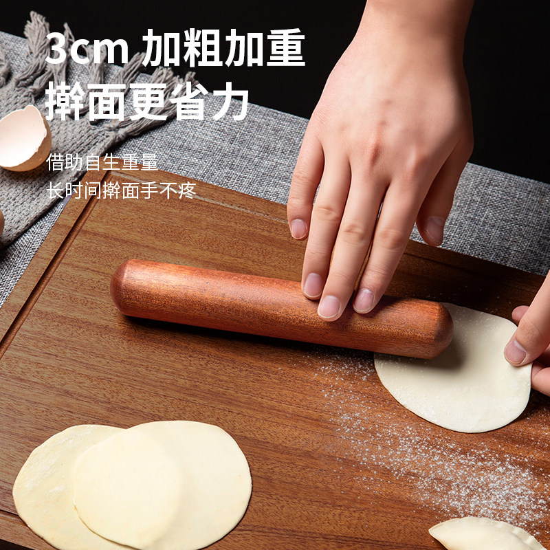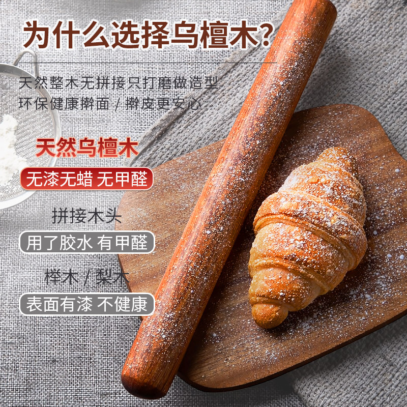 天然乌檀木擀面杖家用实木擀面棍饺子皮食品级无漆光滑不粘赶面棍