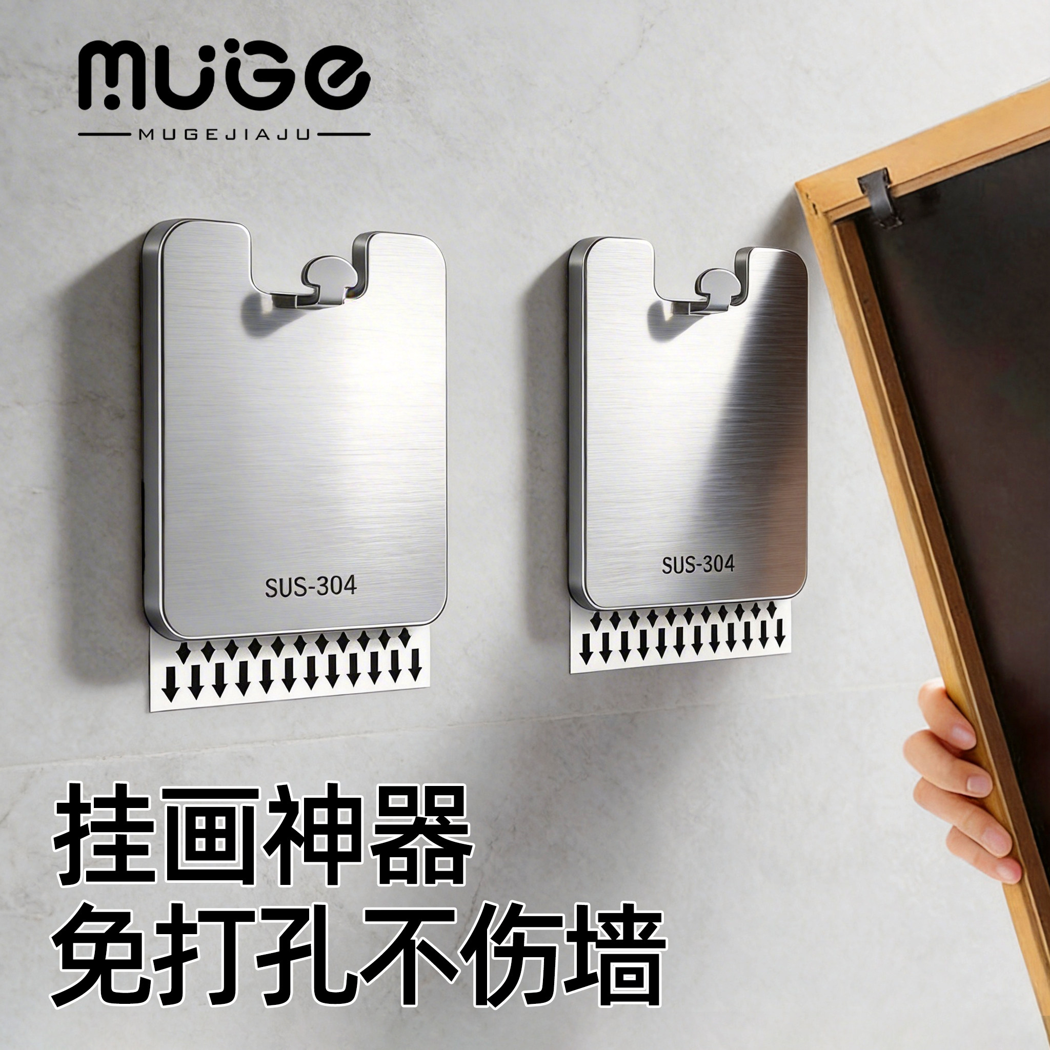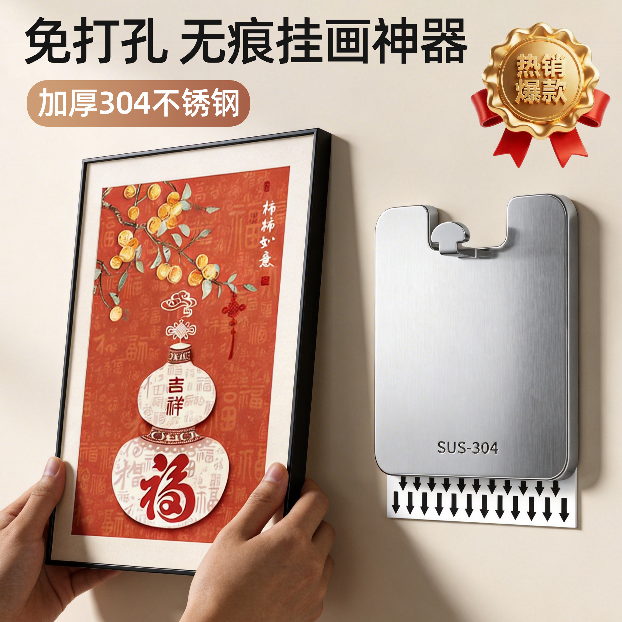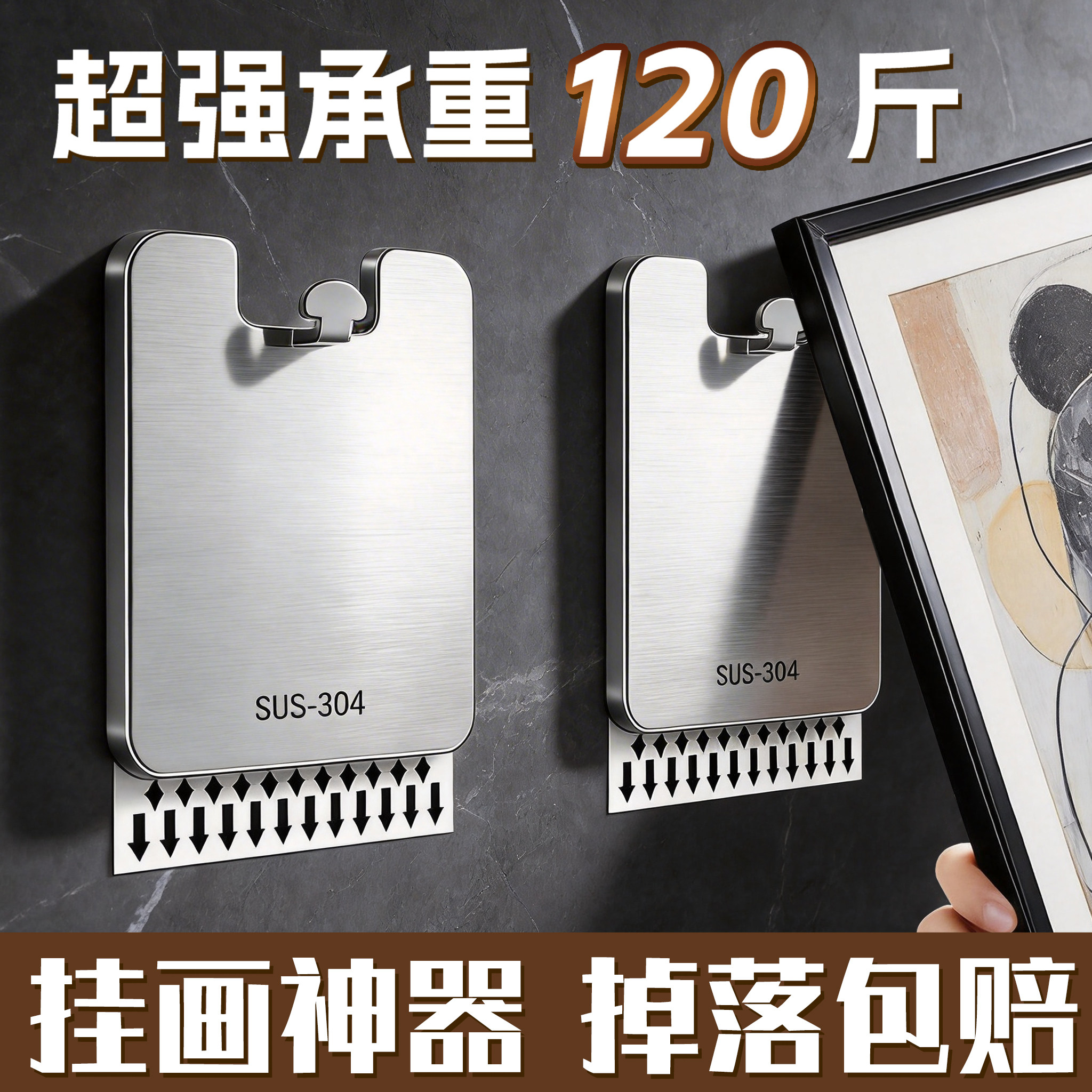 不锈钢挂画神器免打孔挂钩粘钩强力承重乳胶漆专用相框画框无痕钉