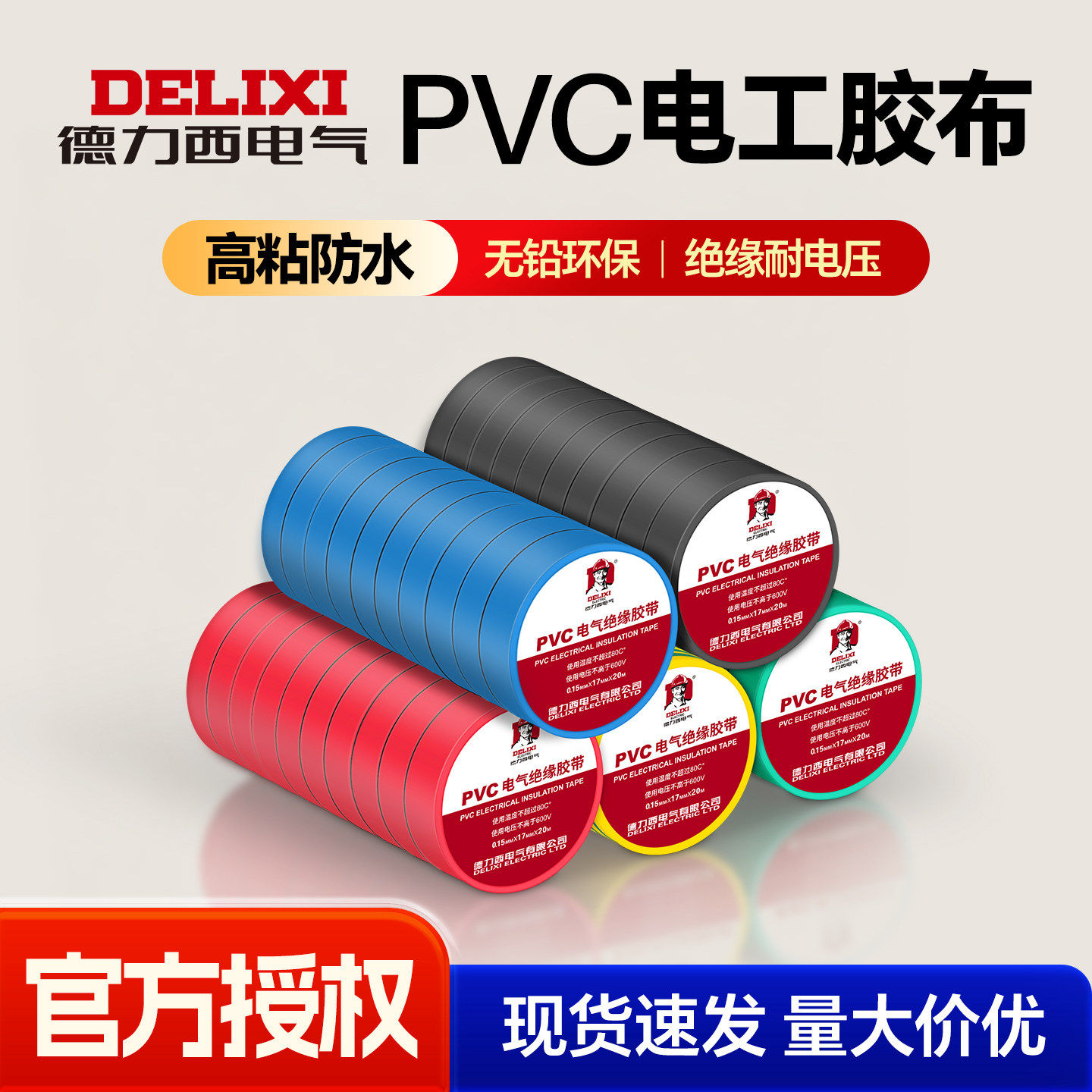 德力西电工胶带绝缘PVC粘性防水耐高温白色大卷电气电线黑电胶布