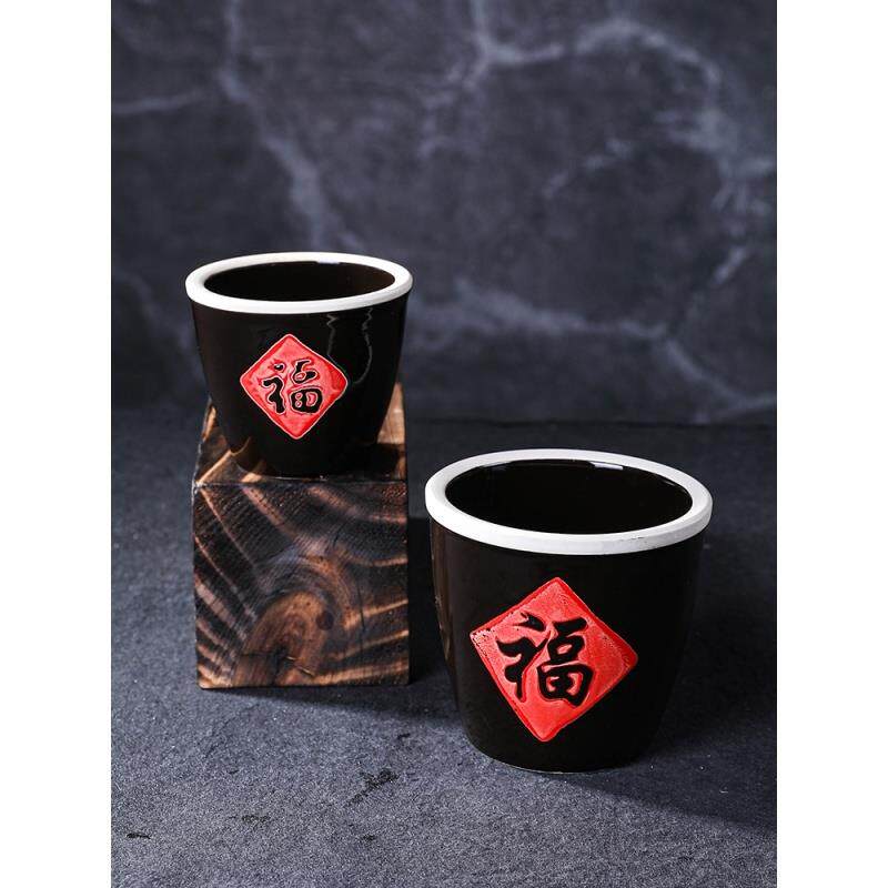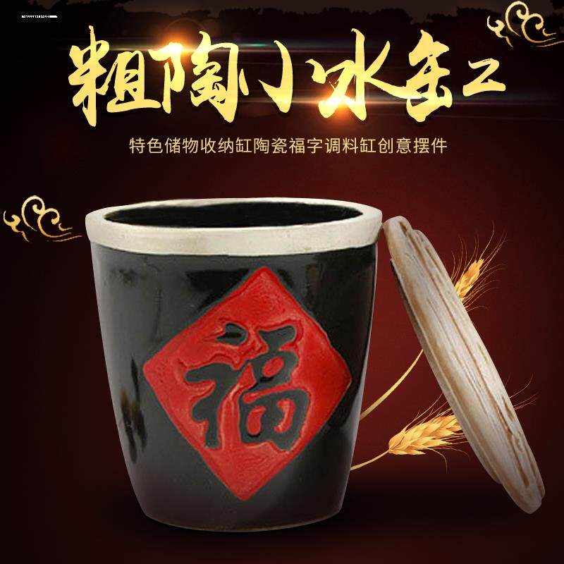 福字米缸摆件百福缸陶瓷米缸招財聚宝盆聚财桶小缸中式家居装饰品