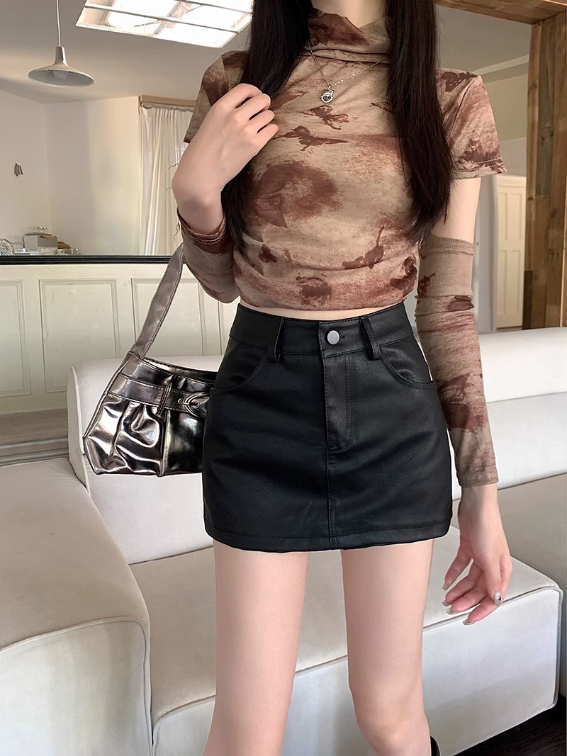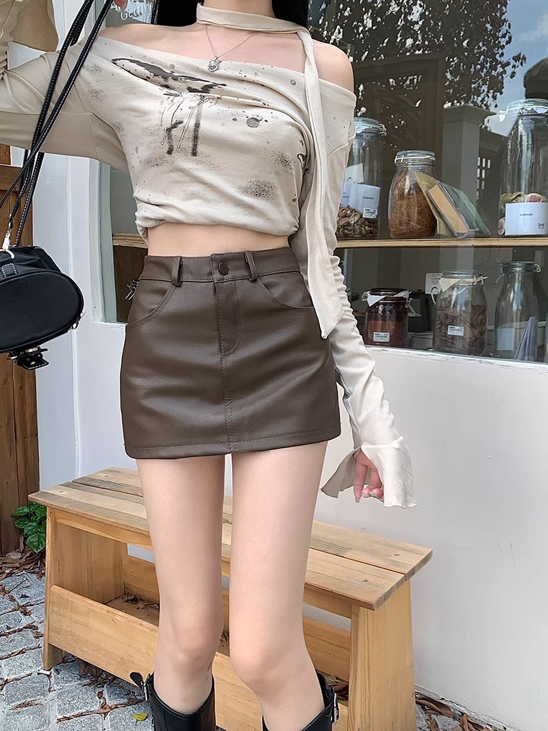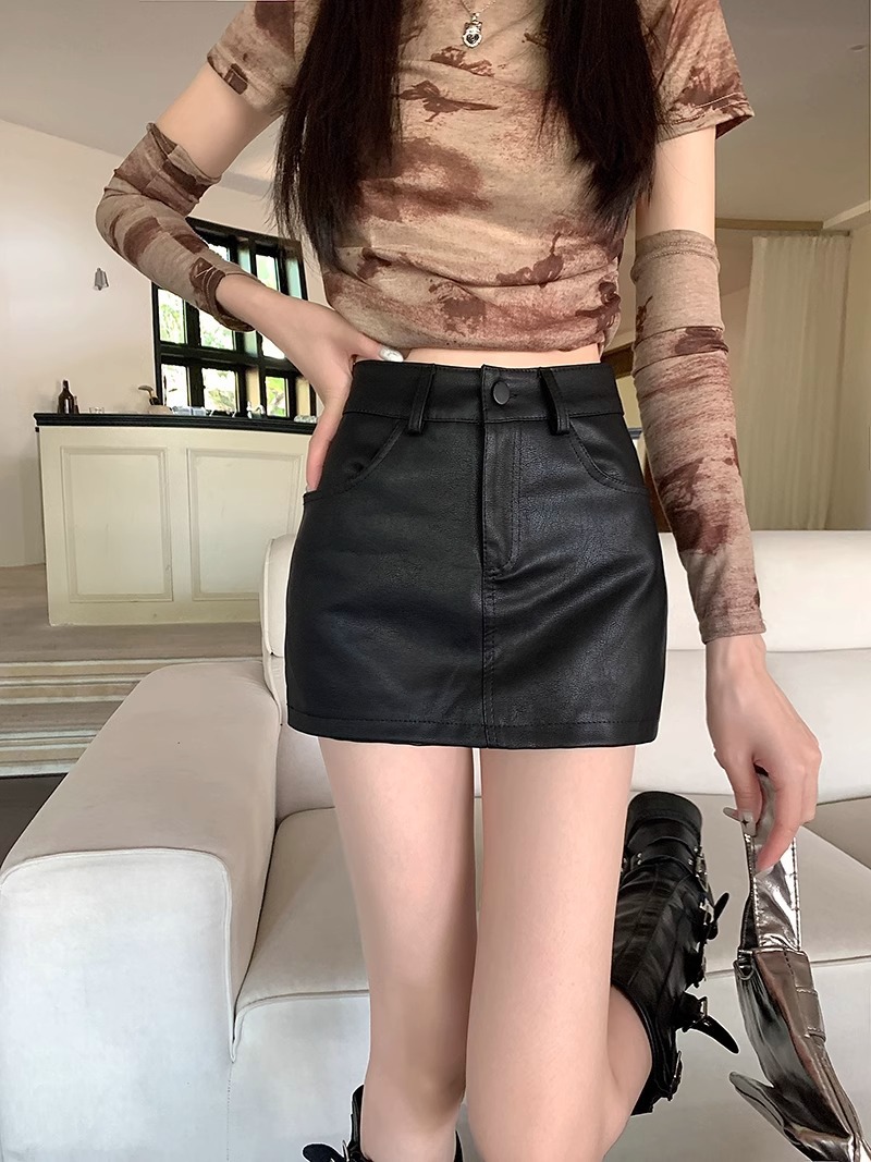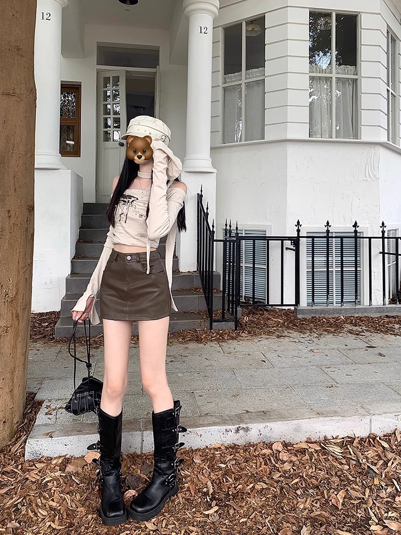 1688美拉德pu皮半身裙女春季2025新款小个子高腰棕色裙子a字包臀短裙