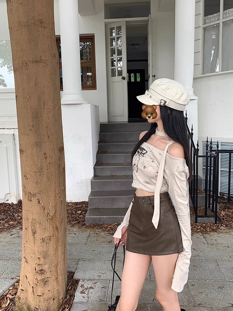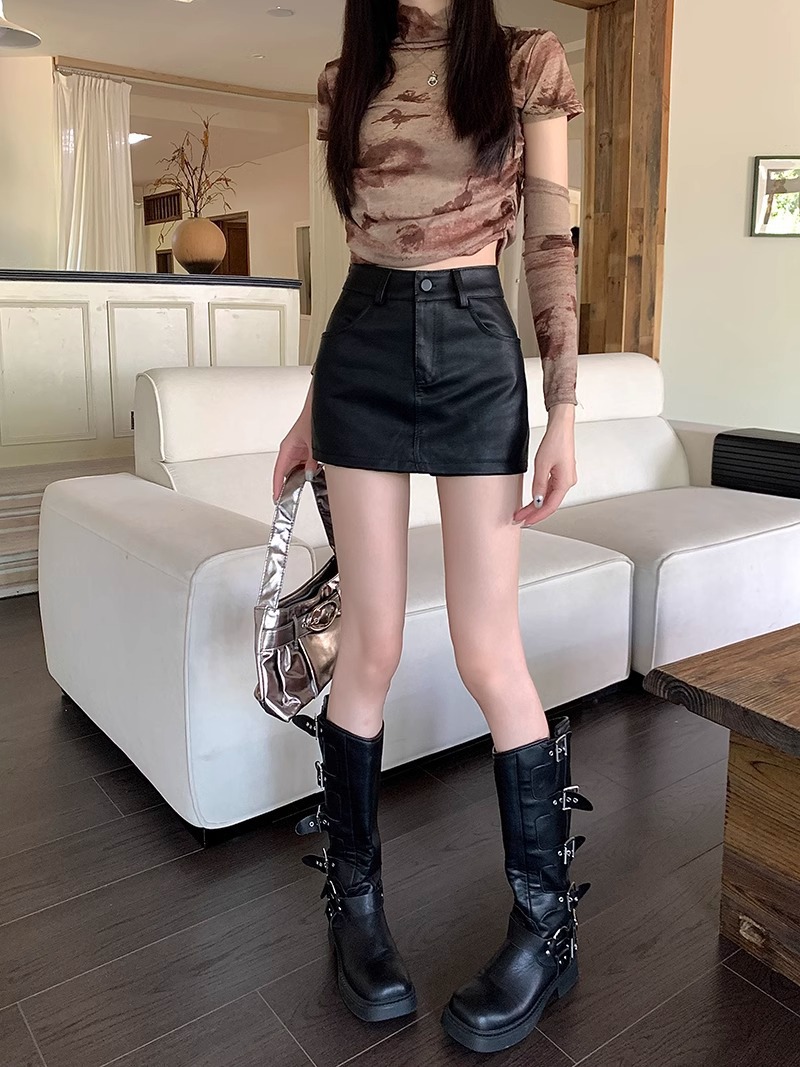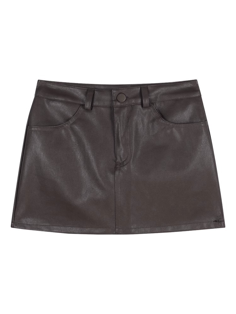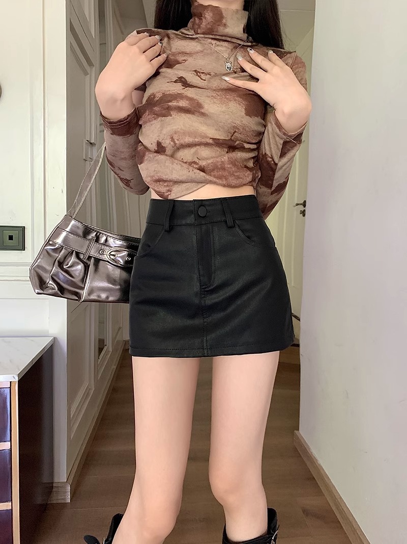 1688美拉德pu皮半身裙女春季2025新款小个子高腰棕色裙子a字包臀短裙