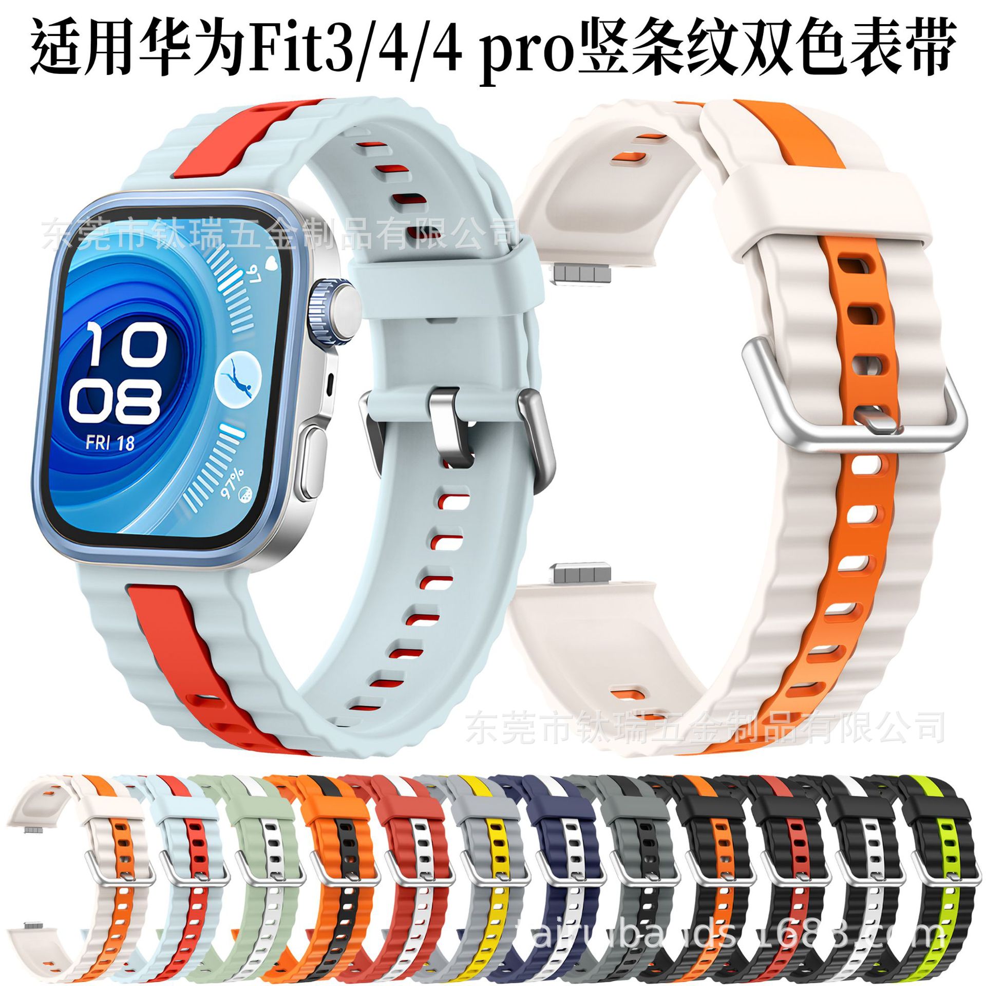 1688适用于华为watch fit4 pro竖纹双色表带HUAWEI Fit4/3硅胶手表带
